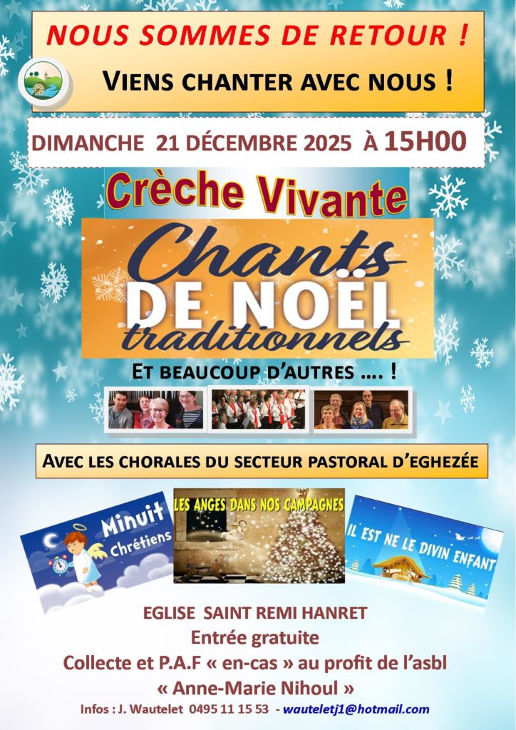 A noter absolument 21 décembre 2025 à 15 h… ! le concert de chants traditionnels de Noël est de retour !