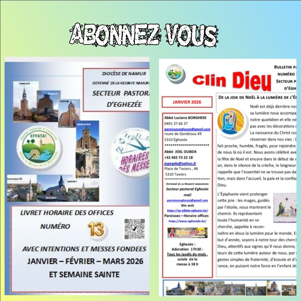 Le BULLETIN PAROISSIAL (ClinDieu) de JANVIER 2026 ainsi que le livret Horaire offices et intentions de messe du 1er trimestre 2026