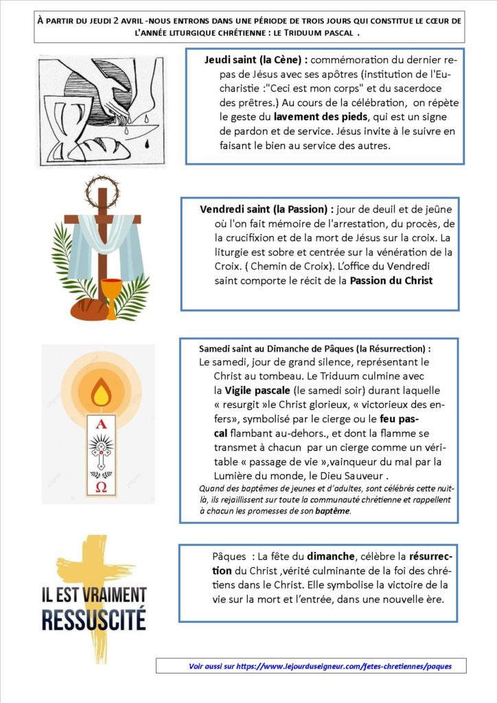 Le Triduum pascal, composé des trois jours précédant Pâques (du Jeudi saint au dimanche de Pâques), est le cœur de la foi chrétienne. Il célèbre le mystère de la passion, de la mort et de la résurrection du Christ, symbolisant le passage de la mort à la vie, de l’ombre à la lumière