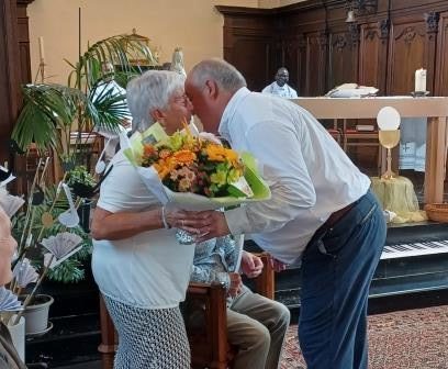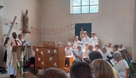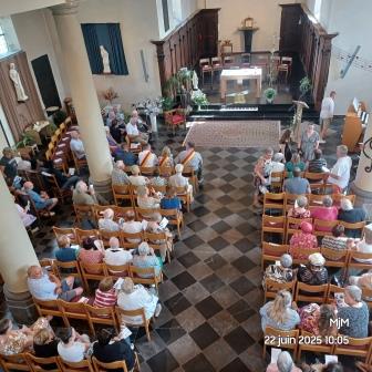 C’est dans la joie que de nombreux paroissiens de Taviers ont accueilli ce dimanche 25 mai 2025 Monseigneur Gabriel Sayaogo, archevêque du diocèse de Koupéla au Burkina Faso. Avec l’abbé Joël Oubda, prêtre de son diocèse, nommé par l’évêché de Namur dans le secteur d’Eghezée, Monseigneur a célébré la messe dominicale qui fut chaleureuse et festive. Elle s’est prolongée par un amical et cordial verre de l’amitié dont tous garderont un souvenir mémorable.(MM Tilkin)