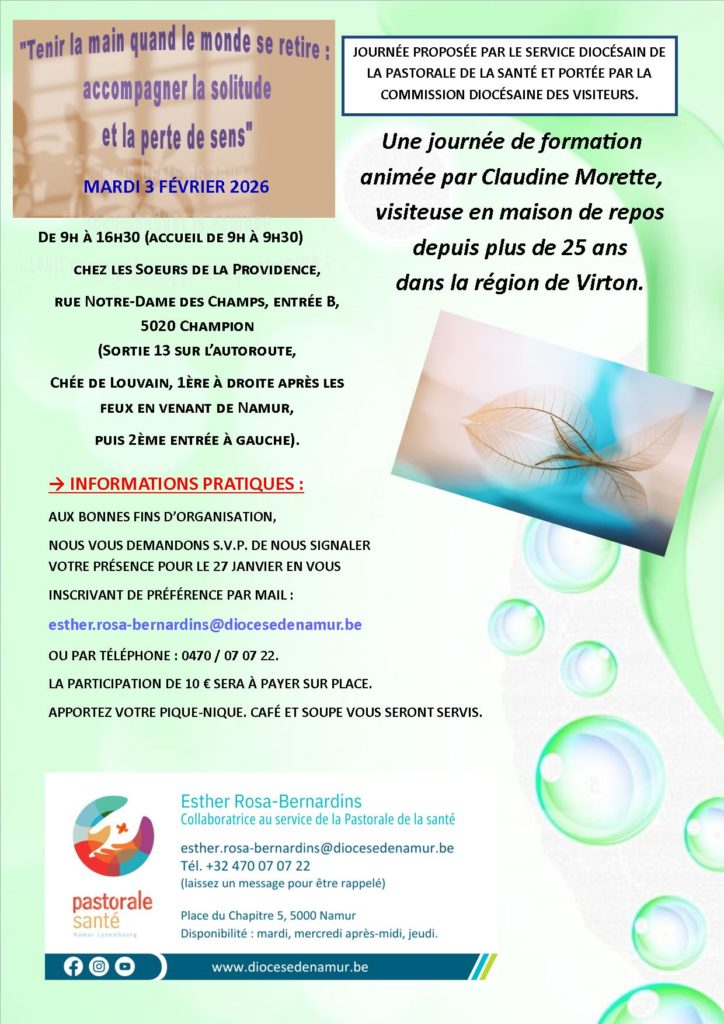 • Namur  mardi 3 février 2026  chez les Soeurs de la Providence ( Champion):  a eu lieu une belle rencontre de réflexion pour les visiteurs de personnes malades, âgées, isolées dans notre région du nord du diocèse. :
